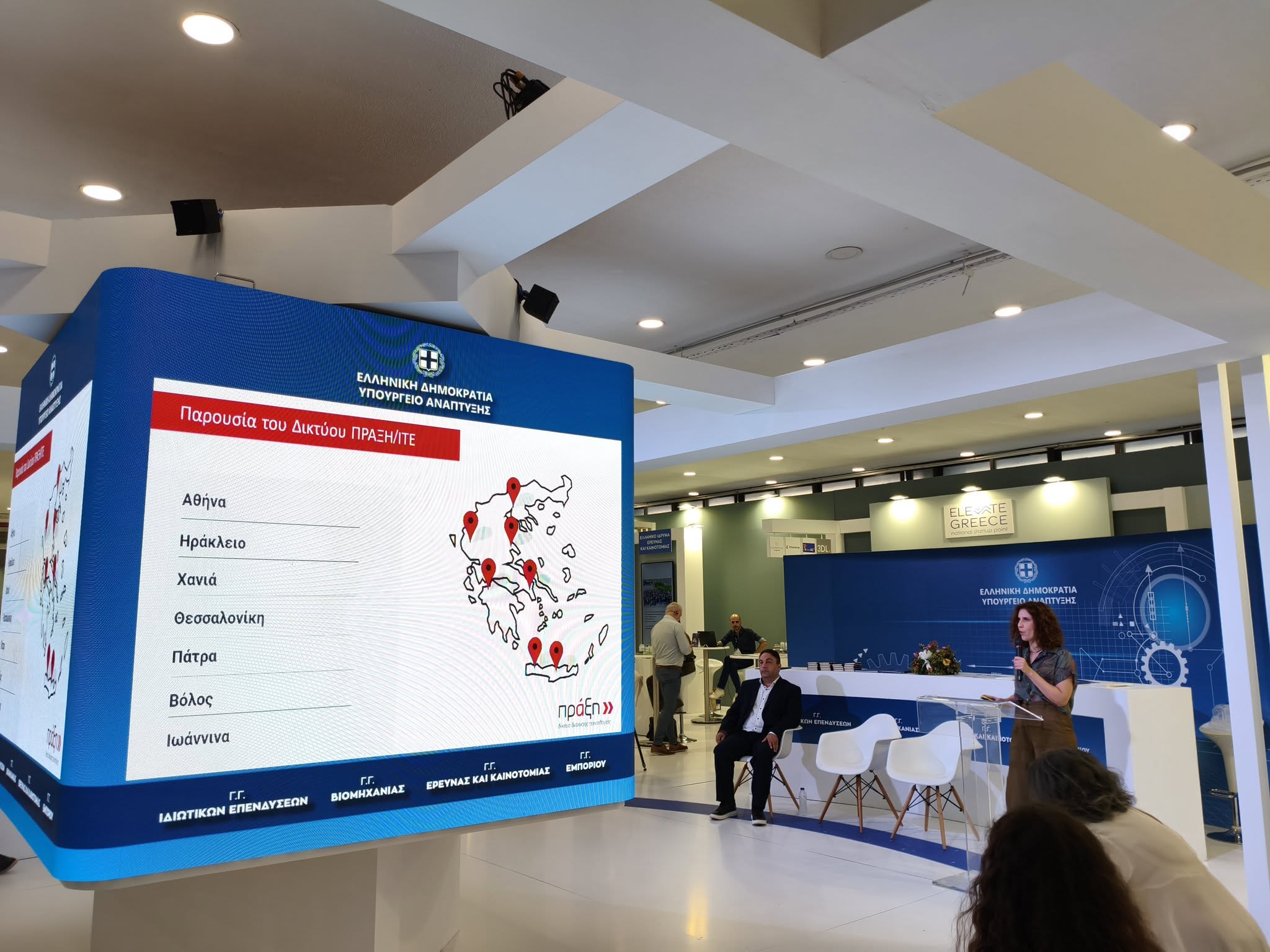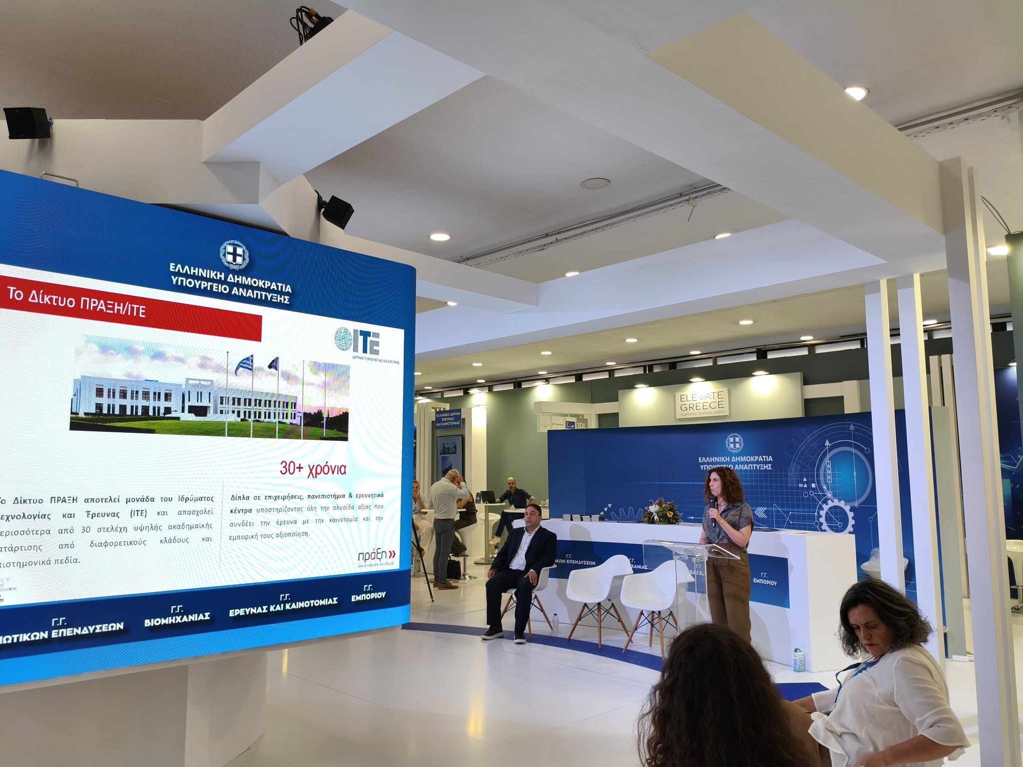 During the exhibition, the PRAXI Network – FORTH booth welcomed numerous visitors from the fields of research, innovation, and entrepreneurship, as well as distinguished representatives of the state and the research ecosystem, including: