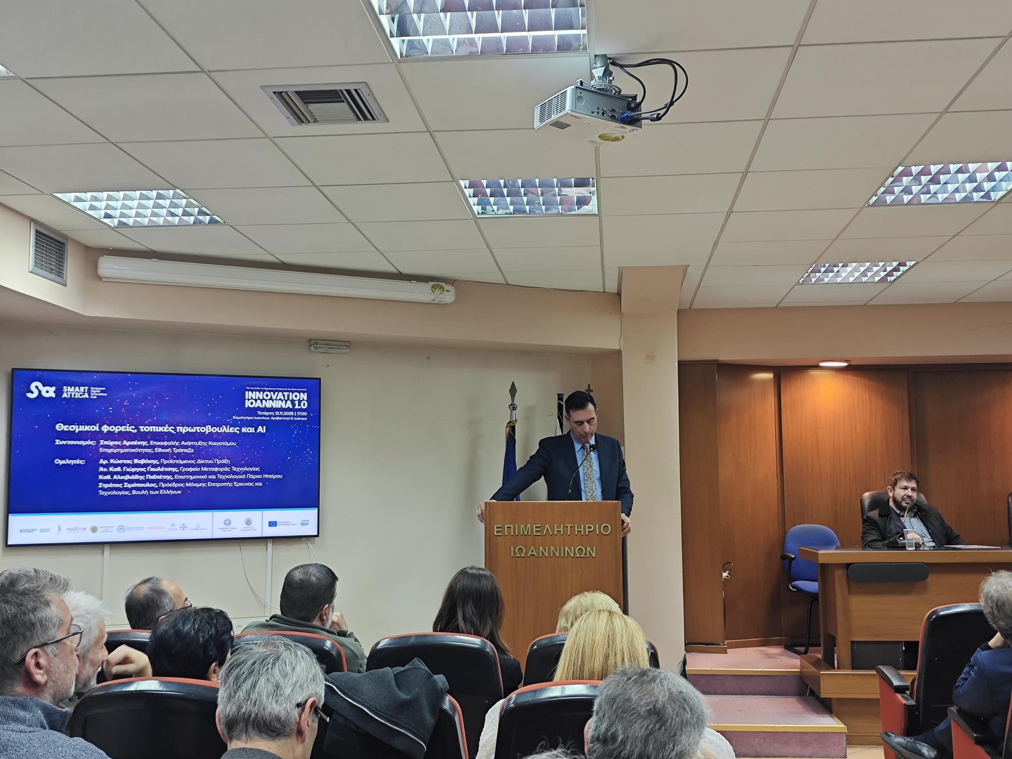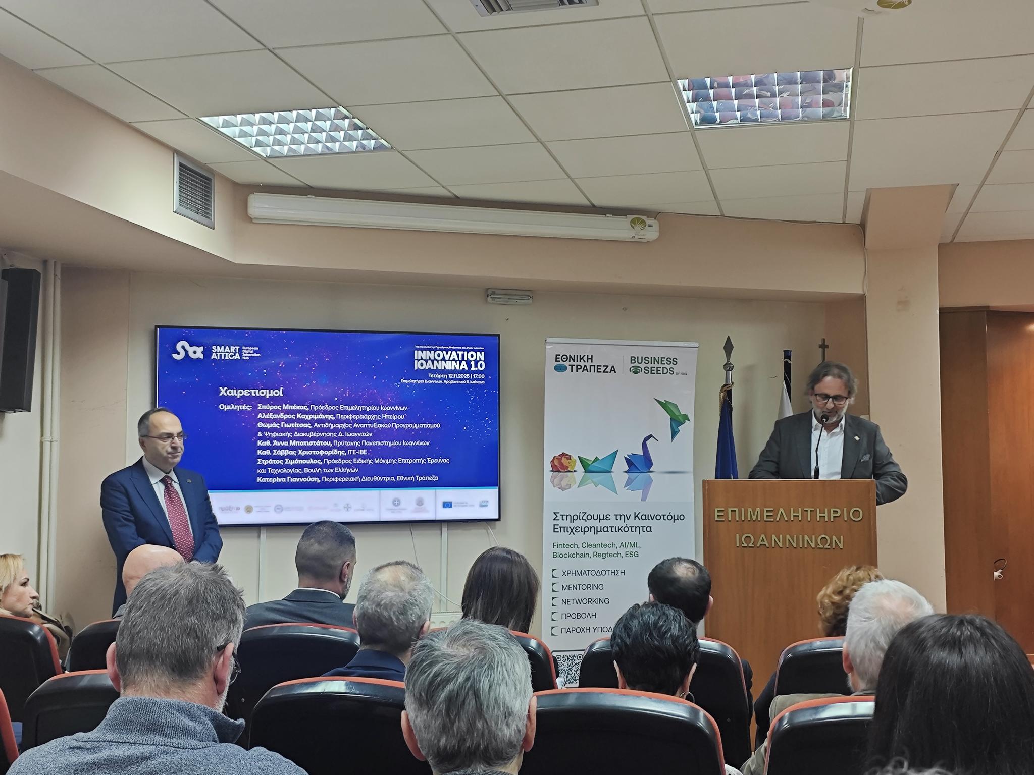Στο πάνελ συμμετείχαν επίσης εκπρόσωποι του Πανεπιστημίου Ιωαννίνων, του Γραφείου Μεταφοράς Τεχνολογίας, του Τεχνολογικού Πάρκου Ηπείρου και της Βουλής των Ελλήνων, παρουσιάζοντας το θεσμικό πλαίσιο που υποστηρίζει το οικοσύστημα καινοτομίας της Περιφέρειας.
